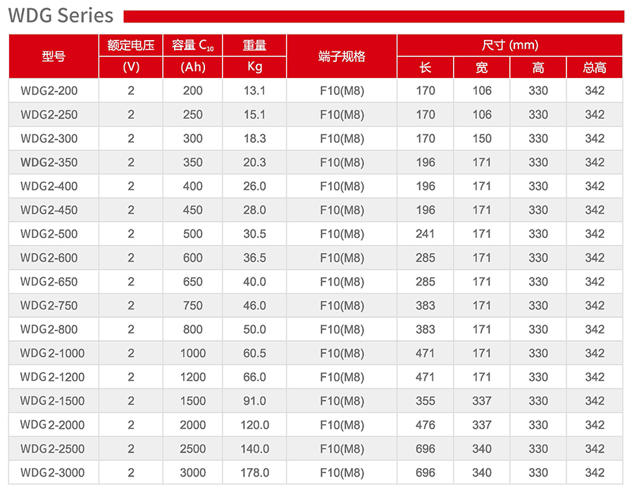 额定电压:2V/6V/12V容量: 26 Ah ~3000Ah纳米材料的高性能胶体电解质温度适用范围广,深放电循环性能优良超长使用寿命,自放电极小,性能稳定,充电接受能力强适用于太阳/风能、UPS、控制系统、通信等领域胶体深循环系